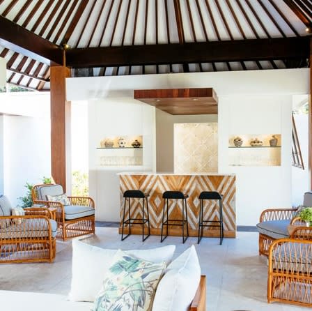 From pergola-covered and perched on a hill to open-air and oceanside, these outdoor bars are the ultimate destinations for at-home relaxation.